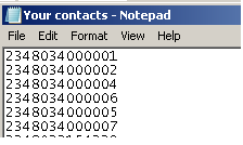 You need to put each of the numbers present in your contact list on a new line i.e. one per line like its shown below